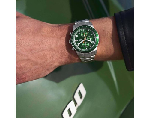 Reloj de pulsera Fossil Sport Tourer FS6048 para Hombre con movimento de Cuarzo, con caja de Acero inoxidable con diàmetro de 42 mm, con cuadrante Verde y correa en Acero inoxidable, color Plateado.