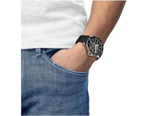 Reloj de pulsera Tissot Seastar T120.607.17.441.00 para Hombre con movimento de Mecánico, con caja de Acero inoxidable con diàmetro de 46 mm, con cuadrante Negro y correa en Silicona, color Negro.