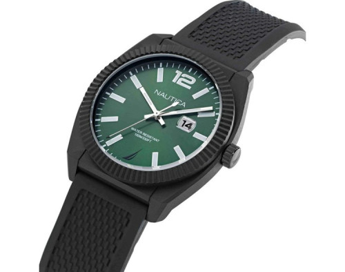 Kvarts Mees Käekell Nautica NAPPBS305, Plastikust korpusega, läbimõõduga 41 mm, Mineraal klaasist, Roheline sihverplaadi ja Must Silikoon rihm.