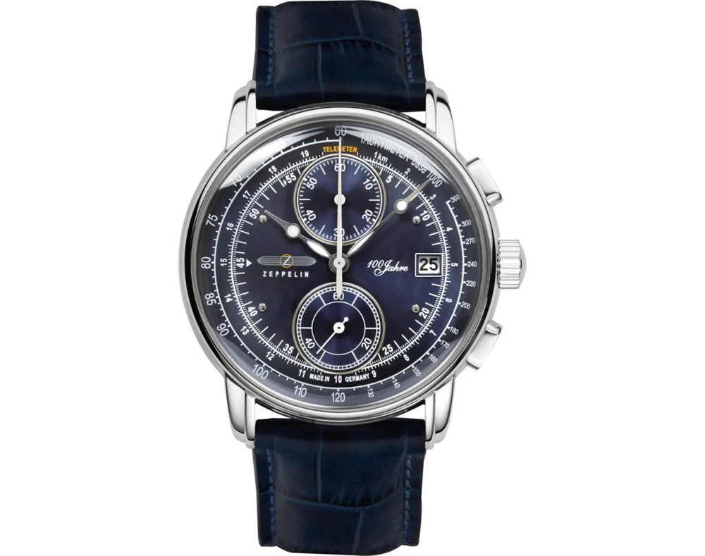 Kvarts Mees Käekell Zeppelin 8670-3, Roostevaba teras korpusega, läbimõõduga 42 mm, Mineraal K1 klaasist, Sinine sihverplaadi ja Sinine Nahk rihm.