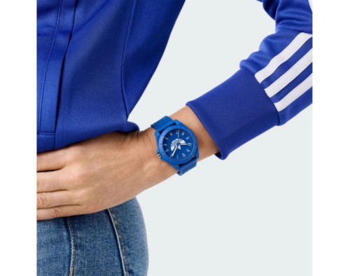 Montre bracelet Adidas Project Four AOST24571 pour Mixte à Quartz, avec une boîtier de Plastique d’un diamètre de 41 mm, avec un cadran Bleu et avec un bracelet de Résine en couleur Bleu.