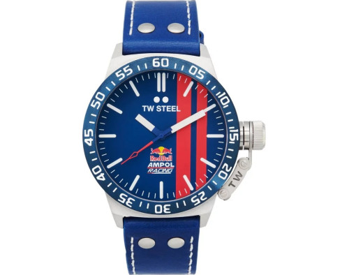 Montre bracelet TW Steel Red Bull Ampol Racing TWCS112 pour Homme à Quartz, avec une boîtier de Acier inoxydable d’un diamètre de 45 mm, avec un cadran Bleu et avec un bracelet de Cuir en couleur Bleu.