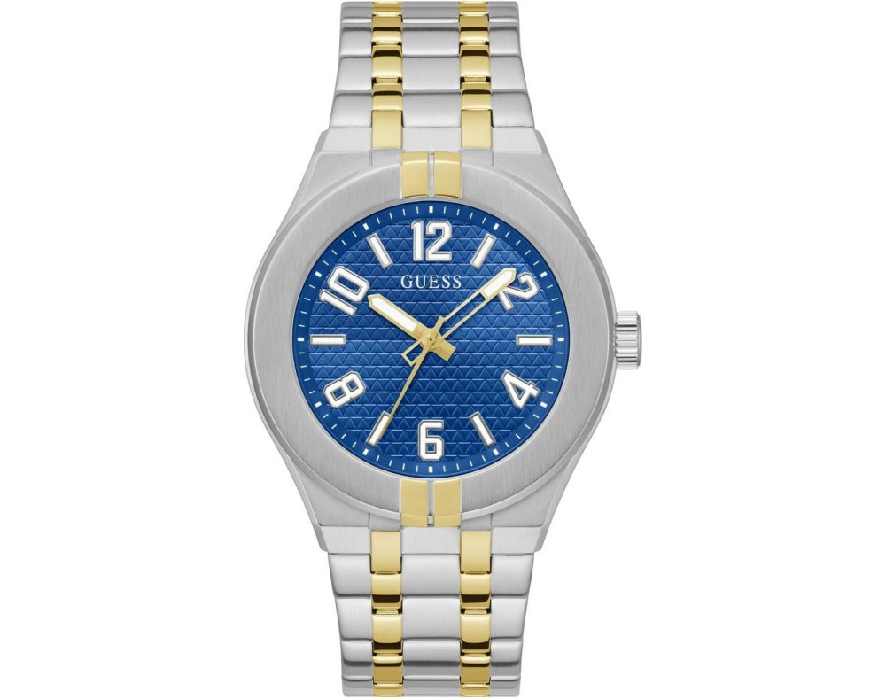 Montre bracelet Guess Escape GW0661G1 pour Homme à Quartz, avec une boîtier de Acier inoxydable d’un diamètre de 44 mm, avec un cadran Bleu et avec un bracelet de Acier inoxydable en couleur Deux tons.