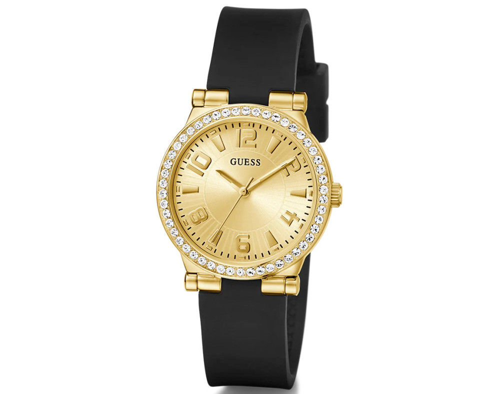 Montre bracelet Guess Fawn GW0844L1 pour Femme à Quartz, avec une boîtier de Acier inoxydable d’un diamètre de 32 mm, avec un cadran Or et avec un bracelet de Silicone en couleur Noir.