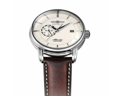Montre bracelet Zeppelin Atlantic 8470-5 pour Homme à Mécanique, avec une boîtier de Acier inoxydable d’un diamètre de 41 mm, avec un cadran Beige et avec un bracelet de Cuir en couleur Marron.