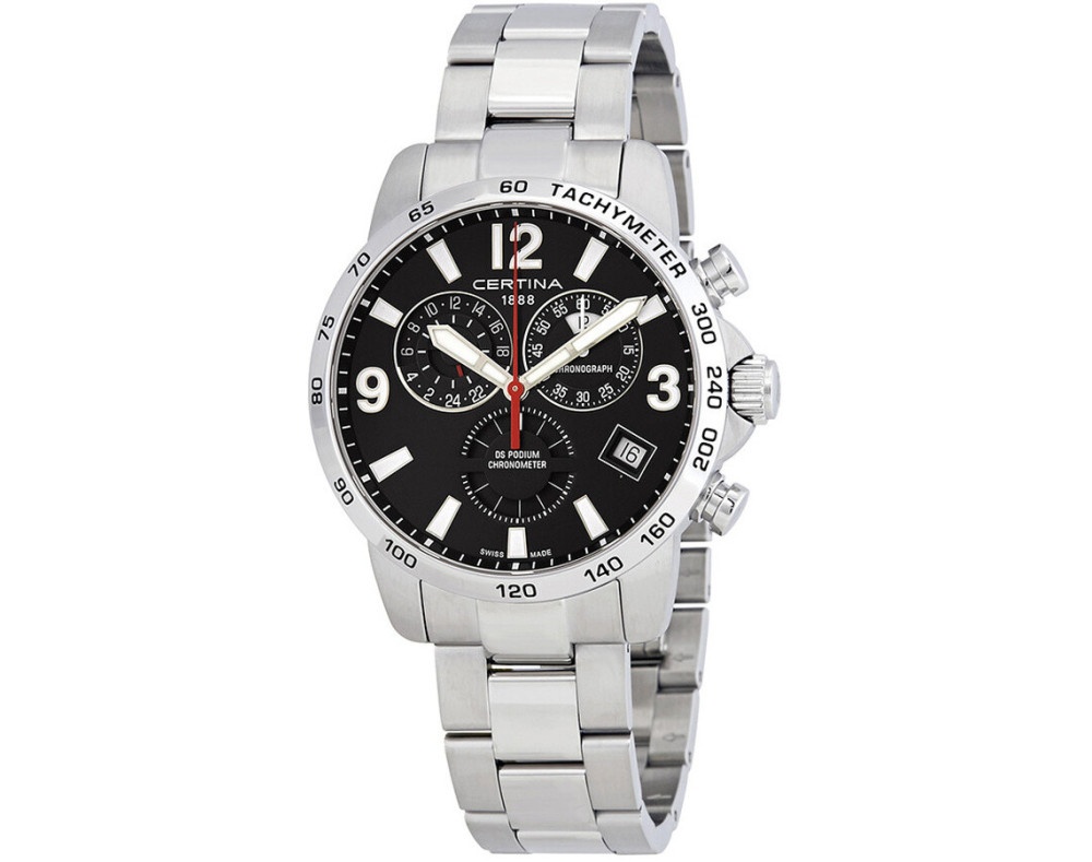 Montre bracelet Certina DS Podium C034.654.11.057.00 pour Homme à Quartz, avec une boîtier de Acier inoxydable d’un diamètre de 42 mm, avec un cadran Noir et avec un bracelet de Acier inoxydable en couleur Argent.