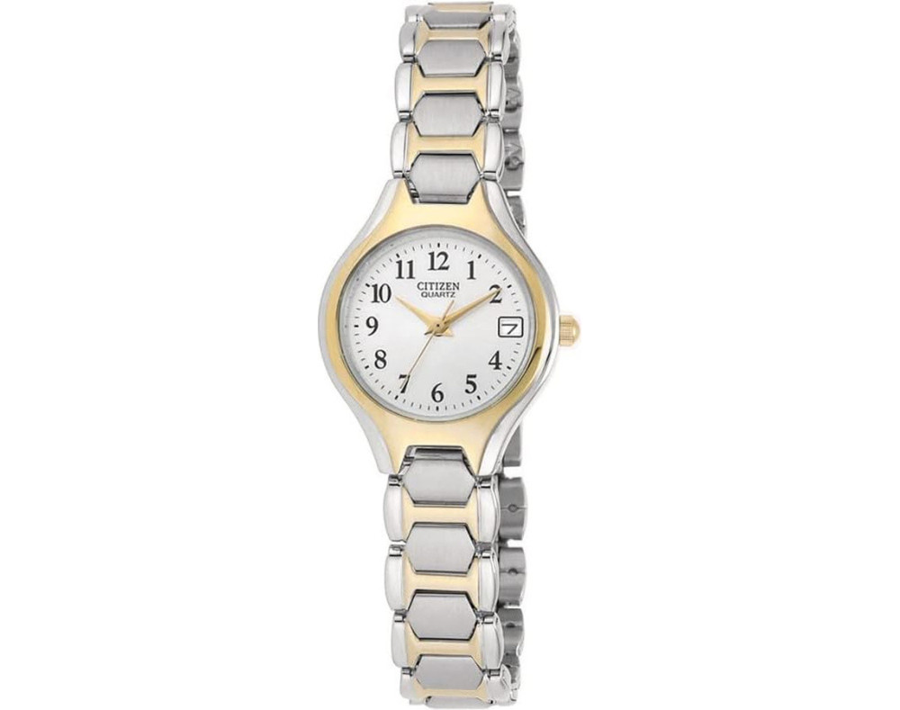 Quartz Womens Wristwatch Citizen EU2254-51A with Stainless steel case, with diameter 23 mm, White dial and Two-tone Stainless steel band.