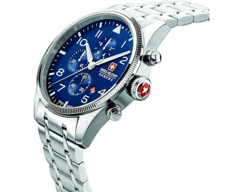 Orologio da polso Swiss Military Hanowa Thunderbolt SMWGI0000403 Cronografo Uomo con movimento Al quarzo, cassa in Acciaio inossidabile di diametro 43 mm, quadrante Blu, vetro Minerale con trattamento Zaffiro e cinturino in Acciaio inossidabile di colore Argento.