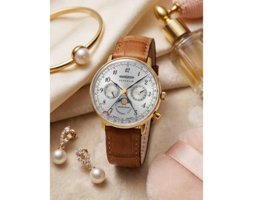 Orologio da polso Zeppelin LZ129 Hindenburg 7039-1 Analogico Donna con movimento Al quarzo, cassa in Acciaio inossidabile di diametro 36 mm, quadrante Argento, vetro Minerale K1 e cinturino in Pelle di colore Marrone.