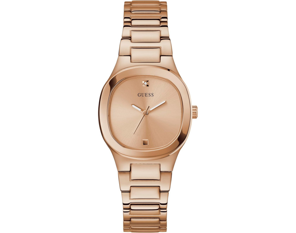 Orologio da polso Guess Eve GW0615L3 Analogico Donna con movimento Al quarzo, cassa in Acciaio inossidabile di diametro 32 mm, quadrante Oro rosa, vetro Minerale e cinturino in Acciaio inossidabile di colore Oro rosa.
