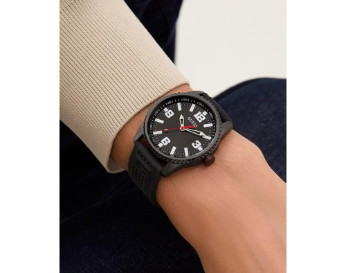Orologio da polso Guess Varsity GW0890G2 Analogico Uomo con movimento Al quarzo, cassa in Acciaio inossidabile di diametro 42 mm, quadrante Nero, vetro Minerale e cinturino in Silicone di colore Nero.