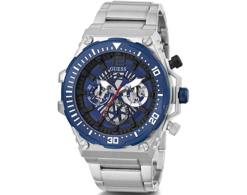 Orologio da polso Guess Elliot GW0894G3 Analogico Uomo con movimento Al quarzo, cassa in Acciaio inossidabile di diametro 44 mm, quadrante Blu, vetro Minerale e cinturino in Silicone di colore Marrone.