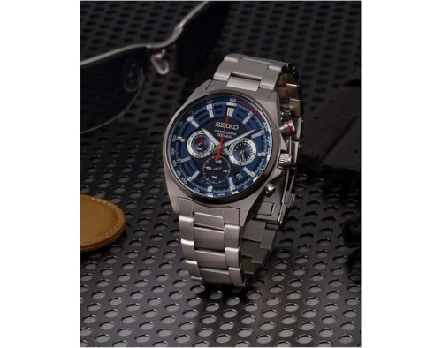 Kvarcas Vyras Rankinis laikrodis Seiko SSB407P1 su Nerūdijantis plienas dėklu, 41 mm skersmens, Mineralinis stiklas, Mėlyna ciferblatu ir Sidabras Nerūdijantis plienas apyranke.