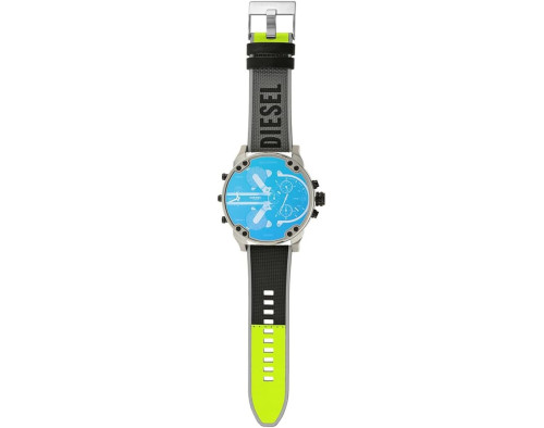 Kvarcas Vyras Rankinis laikrodis Diesel DZ7429 su Nerūdijantis plienas dėklu, 57 mm skersmens, Mineralinis stiklas, Juoda ciferblatu ir Daugiaspalvis Audinys apyranke.