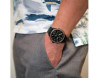 Kvarcas Vyras Rankinis laikrodis Tommy Hilfiger 1791854 su Nerūdijantis plienas dėklu, 45 mm skersmens, Mineralinis stiklas, Juoda ciferblatu ir Juoda Oda apyranke.