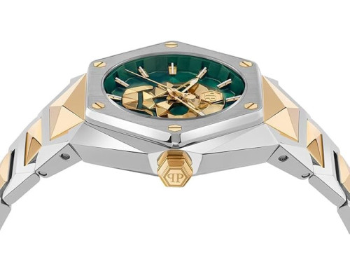 Kvarcas Vyras Rankinis laikrodis Philipp Plein PWPWA0724 su Nerūdijantis plienas dėklu, 45 mm skersmens, Mineralinis stiklas, Žalias ciferblatu ir Dviejų atspalvių Nerūdijantis plienas apyranke.