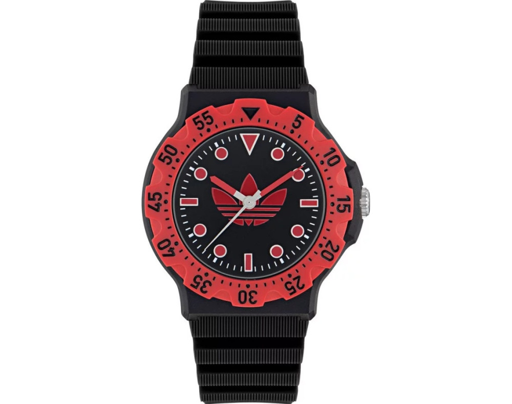 Kvarcas Unisex Rankinis laikrodis Adidas AOSY25514 su Derva dėklu, 40 mm skersmens, Mineralinis stiklas, Juoda ciferblatu ir Juoda Silikonas apyranke.