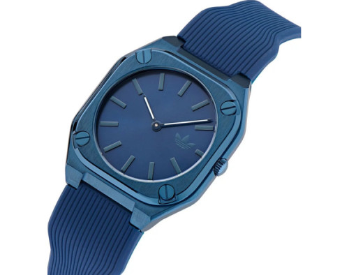 Kvarcas Unisex Rankinis laikrodis Adidas AOFH24001 su Nerūdijantis plienas dėklu, 39 mm skersmens, Mineralinis stiklas, Mėlyna ciferblatu ir Mėlyna Silikonas apyranke.