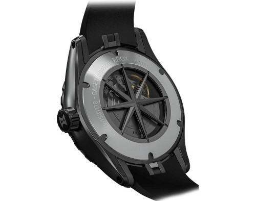 Mechaninis Vyras Rankinis laikrodis EDOX 94500 357GNCA NIR su Nerūdijantis plienas dėklu, 40 mm skersmens, Mineralas su safyru stiklas, Juoda ciferblatu ir Juoda Trintukas apyranke.
