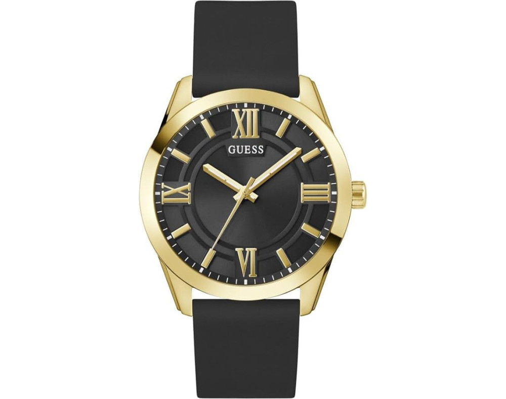 Kvarcas Vyras Rankinis laikrodis Guess GW0894G2 su Nerūdijantis plienas dėklu, 44 mm skersmens, Mineralinis stiklas, Juoda ciferblatu ir Juoda Silikonas apyranke.