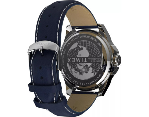 Kvarcas Vyras Rankinis laikrodis Timex TW2W80200 su Nerūdijantis plienas dėklu, 46 mm skersmens, Mineralinis stiklas, Mėlyna ciferblatu ir Mėlyna Oda apyranke.