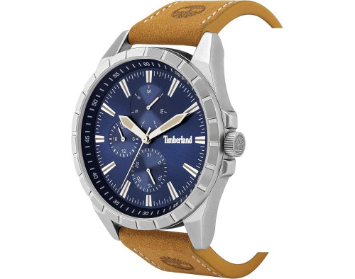 Kvarcs Cilvēks Rokas pulkstenis Timberland TBL15909JYS03AS ar Nerūsējošais tērauds korpusu, ar diametru 48 mm, Minerāls stikls, Zils ciparnīcu un Brūns Āda siksnu.