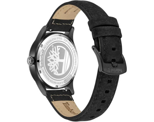 Kvarcs Cilvēks Rokas pulkstenis Timberland TDWGB2237501 ar Nerūsējošais tērauds korpusu, ar diametru 42 mm, Minerāls stikls, Melns ciparnīcu un Melns Āda siksnu.
