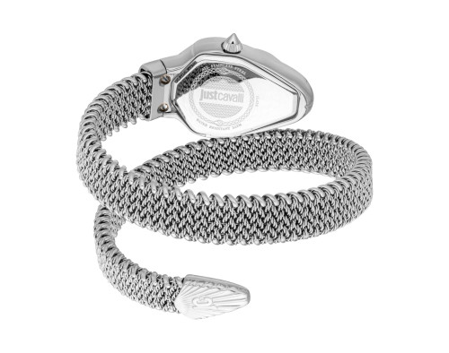 Kvarcs Sieviete Rokas pulkstenis Just Cavalli JC1L426M0015 ar Nerūsējošais tērauds korpusu, ar diametru 21 mm, Minerāls stikls, Sudrabs ciparnīcu un Sudrabs Nerūsējošais tērauds siksnu.