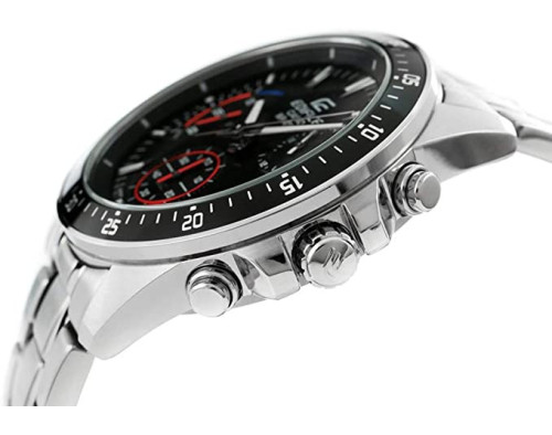 Kvarcs Cilvēks Rokas pulkstenis Casio Edifice EFV-540D-1AVUEF ar Nerūsējošais tērauds korpusu, ar diametru 44 mm, Minerāls stikls, Melns ciparnīcu un Sudrabs Nerūsējošais tērauds siksnu.
