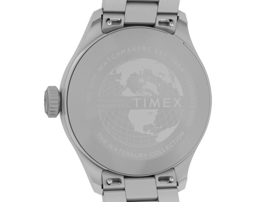 Kvarcs Cilvēks Rokas pulkstenis Timex TW2Y18800UK ar Nerūsējošais tērauds korpusu, ar diametru 41 mm, Minerāls stikls, Sudrabs ciparnīcu un Sudrabs Nerūsējošais tērauds siksnu.