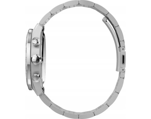 Kvarcs Cilvēks Rokas pulkstenis Timex TW2V42400UK ar Nerūsējošais tērauds korpusu, ar diametru 41 mm, Minerāls stikls, Daudzkrāsains ciparnīcu un Sudrabs Nerūsējošais tērauds siksnu.