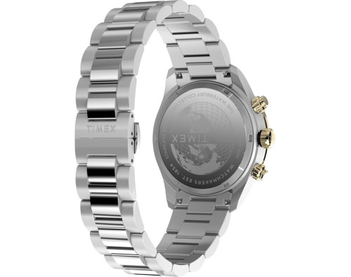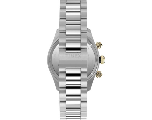 Kvarcs Cilvēks Rokas pulkstenis Timex TW2Y24000 ar Nerūsējošais tērauds korpusu, ar diametru 39 mm, Minerāls stikls, Melns ciparnīcu un Sudrabs Nerūsējošais tērauds siksnu.