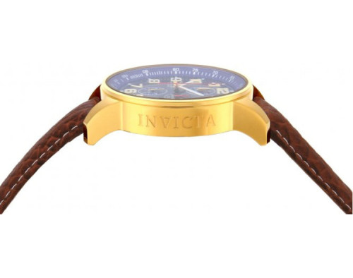 Kvarcs Cilvēks Rokas pulkstenis Invicta 3329 ar Nerūsējošais tērauds korpusu, ar diametru 46 mm, Minerāls stikls, Zils ciparnīcu un Brūns Āda siksnu.