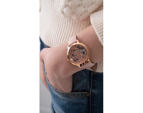 Kvarcs Sieviete Rokas pulkstenis Guess GW0383L2 ar Nerūsējošais tērauds korpusu, ar diametru 36 mm, Minerāls stikls, Rozā zelts ciparnīcu un Roze Āda siksnu.