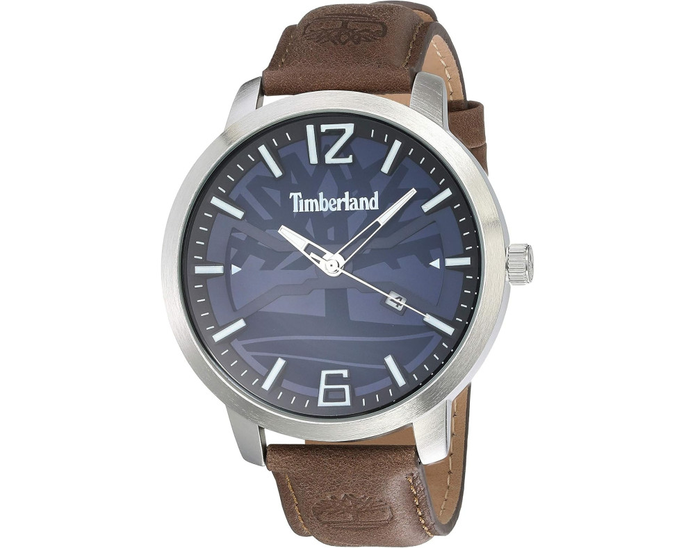 Кварц Мужчина Наручные часы Timberland TBL15899JYS03-G, корпус Нержавеющая сталь, диаметр 50 mm, Минеральная стекло, Синий циферблат и Коричневый Кожа ремешок.