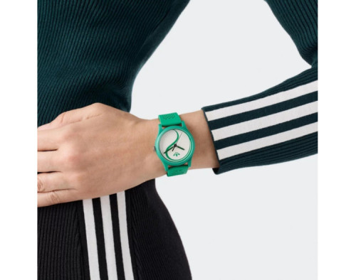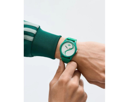 Кварц унисекс Наручные часы Adidas AOSY25519, корпус Смола, диаметр 38 mm, Акрил стекло, Белый циферблат и Зеленый Силикон ремешок.