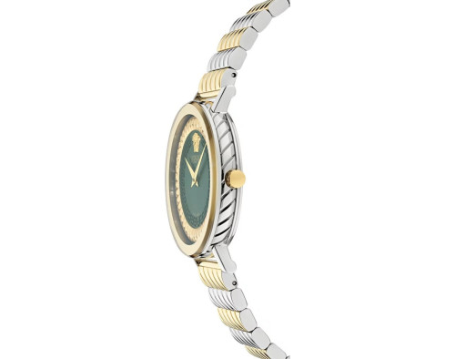 Кварц Женщина Наручные часы Versace VE0O00225, корпус Нержавеющая сталь, диаметр 35 mm, Минерал с обработкой сапфиром стекло, Зеленый циферблат и Две тонны Нержавеющая сталь ремешок.
