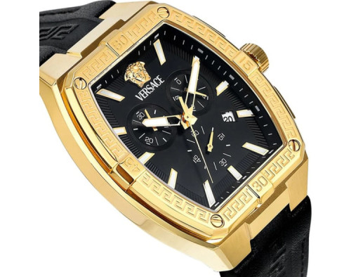 Кварц Мужчина Наручные часы Versace VESP00324, корпус Нержавеющая сталь, диаметр 44 mm, Минерал с обработкой сапфиром стекло, Черный циферблат и Черный Кожа ремешок.