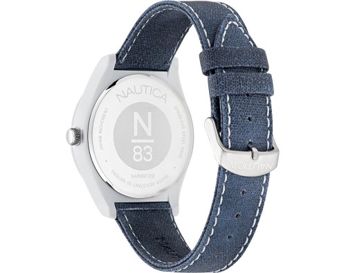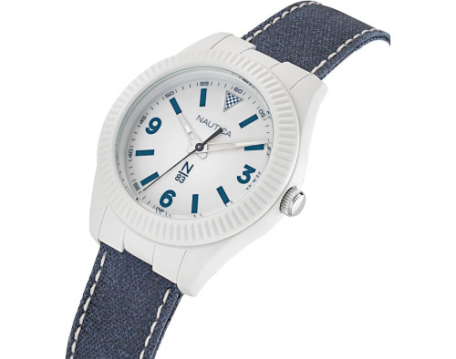 Кварц Мужчина Наручные часы Nautica NAPMBF203, корпус Смола, диаметр 41 mm, Минеральная стекло, Белый циферблат и Синий Салфетка ремешок.