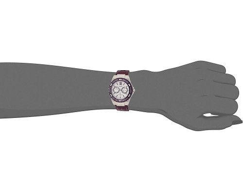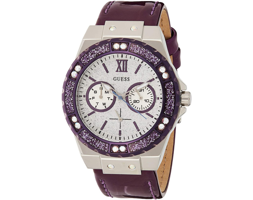 Кварц Женщина Наручные часы Guess W0775L6, корпус Нержавеющая сталь, диаметр 38 mm, Минеральная стекло, Серебро циферблат и Виола Кожа ремешок.