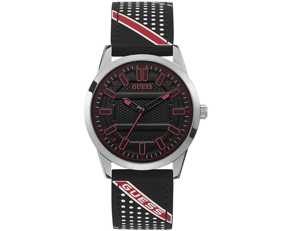 Кварц Мужчина Наручные часы Guess W1300G1, корпус Нержавеющая сталь, диаметр 42 mm, Минеральная стекло, Черный циферблат и Черный Силикон ремешок.