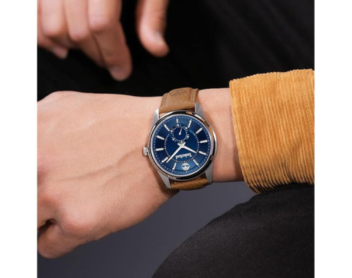 Quartz Man Wristwatch Timberland Northbridge TDWGA0029702 with Stainless steel case, with diameter 45 mm, Blue dial and Brown Leather band.