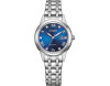 Quartz Womens Wristwatch Citizen Eco-Drive Elegance FE1240-81L with Stainless steel case, with diameter 29 mm, Blue dial and Silver Stainless steel band.