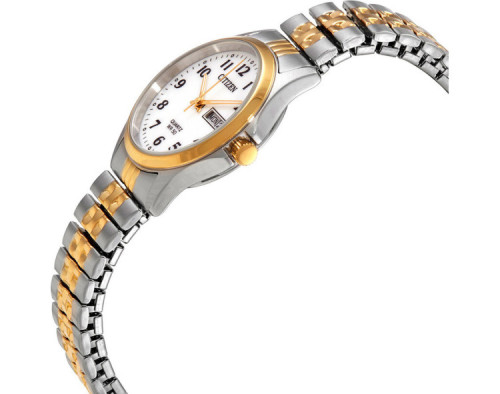 Quartz Womens Wristwatch Citizen EQ2004-95A with Stainless steel case, with diameter 26 mm, White dial and Two-tone Stainless steel band.