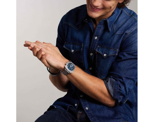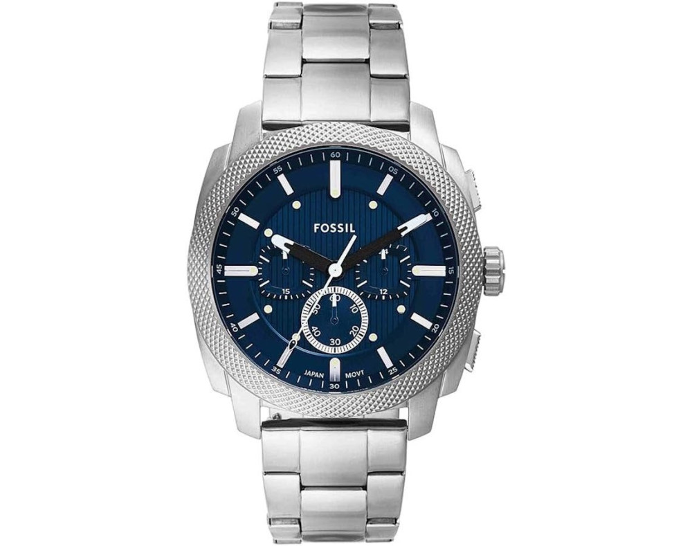 Orologio da polso Fossil Machine FS6096 Cronografo Uomo con movimento Al quarzo, cassa in Acciaio inossidabile di diametro 44 mm, quadrante Blu, vetro Minerale e cinturino in Acciaio inossidabile di colore Argento.