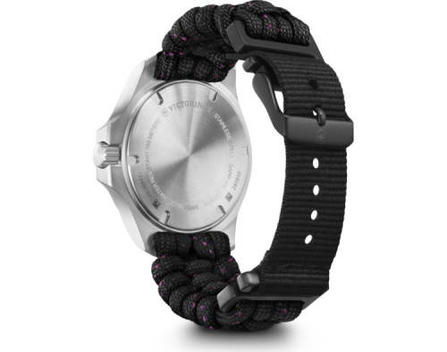 Orologio da polso Victorinox I.N.O.X. V 241918 Analogico Donna con movimento Al quarzo, cassa in Acciaio inossidabile di diametro 37 mm, quadrante Nero, vetro Minerale con trattamento Zaffiro e cinturino in Tessuto di colore Nero.