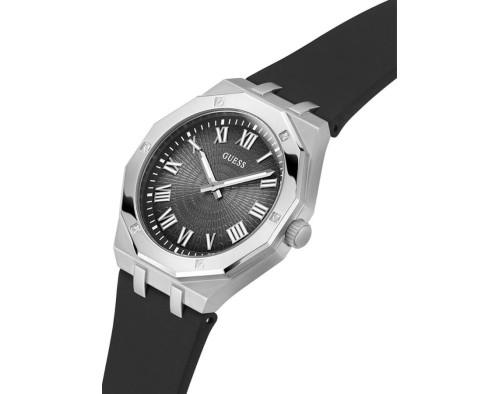 Orologio da polso Guess Asset GW0663G1 Analogico Uomo con movimento Al quarzo, cassa in Acciaio inossidabile di diametro 42 mm, quadrante Nero, vetro Minerale e cinturino in Silicone di colore Nero.
