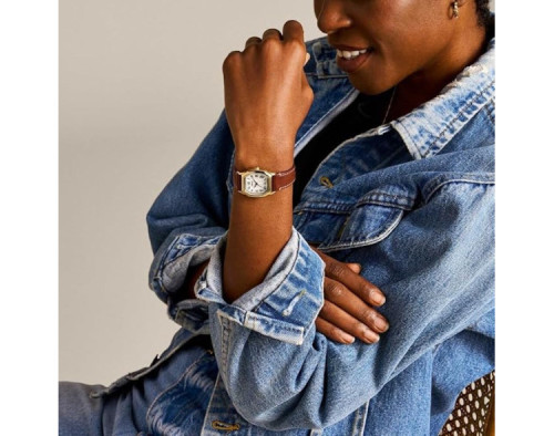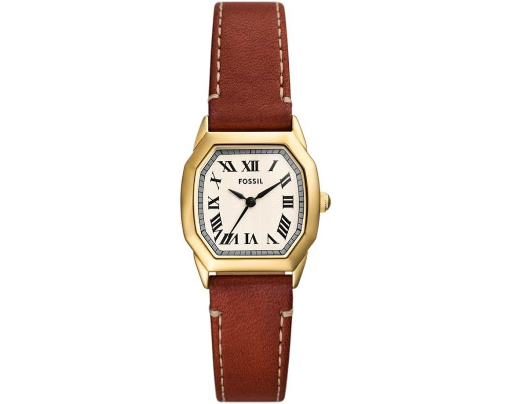 Kvarcas Moteris Rankinis laikrodis Fossil ES5364 su Nerūdijantis plienas dėklu, 27 mm skersmens, Mineralinis stiklas, Baltas ciferblatu ir Ruda Oda apyranke.