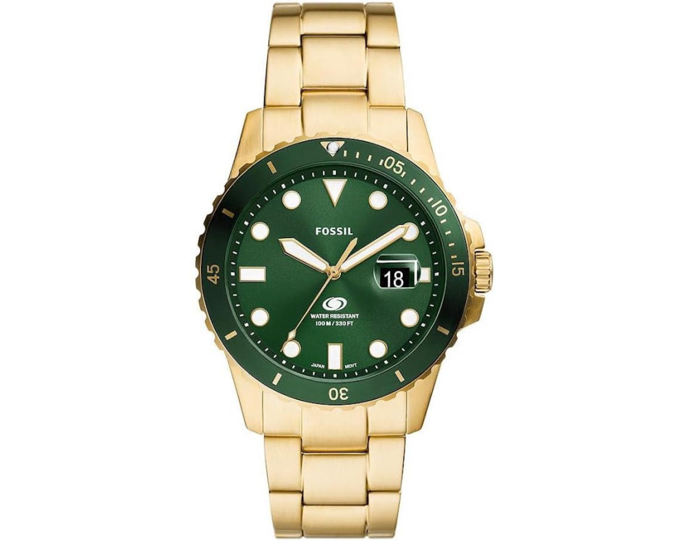 Kvarcas Vyras Rankinis laikrodis Fossil FS6030 su Nerūdijantis plienas dėklu, 42 mm skersmens, Mineralinis stiklas, Žalias ciferblatu ir Auksas Nerūdijantis plienas apyranke.