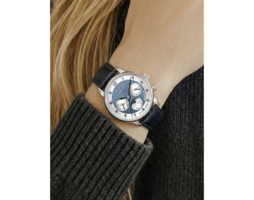 Kvarcas Moteris Rankinis laikrodis Zeppelin 8537-3 su Nerūdijantis plienas dėklu, 36 mm skersmens, Mineralinis K1 stiklas, Dangaus mėlynumo ciferblatu ir Mėlyna Oda apyranke.